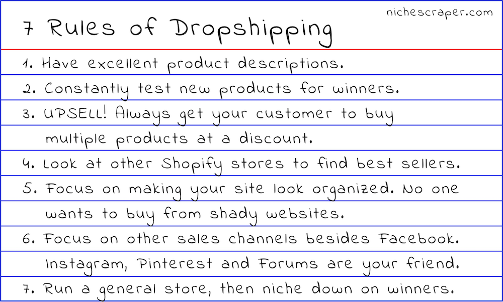 With thousands of dropshipping articles and courses on the internet, its hard to filter out the important bits of information. Instead, here's 7 easy rules to follow that fit on a notecard.